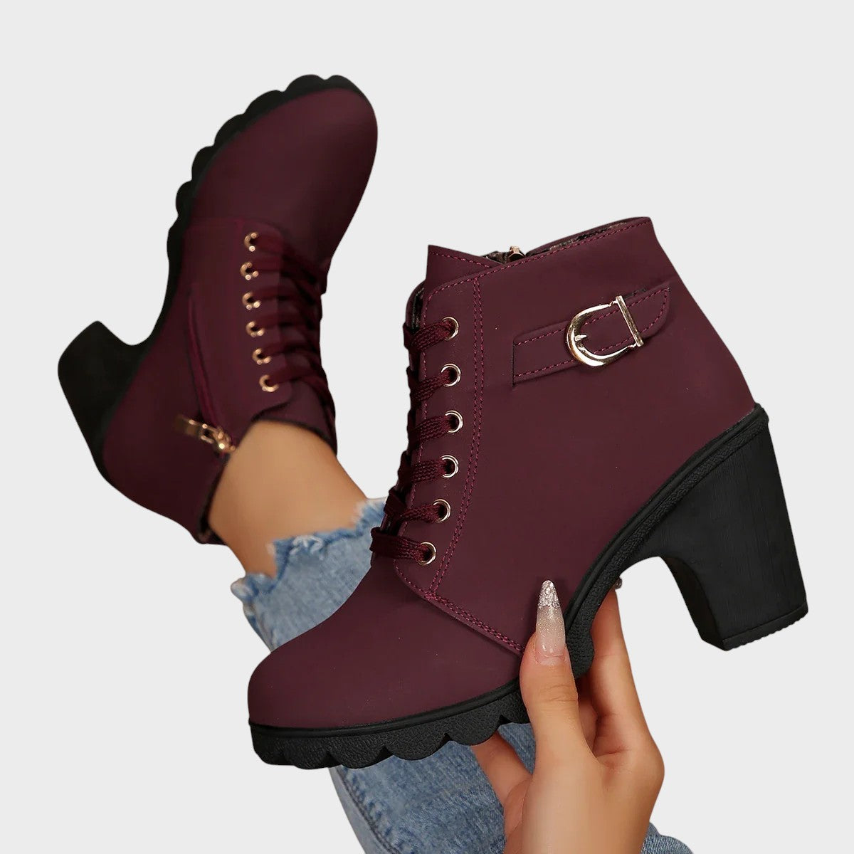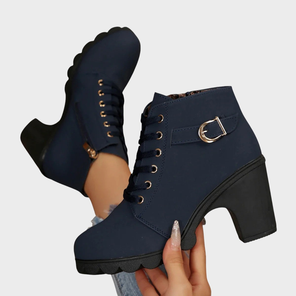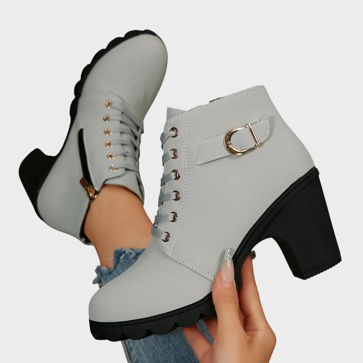 Tieto členkové topánky dokonale spájajú eleganciu a praktickosť. Stredný opätok zaisťuje stabilitu a vizuálne predlžuje siluetu, zatiaľ čo bočný zips umožňuje jednoduché obúvanie a vyzúvanie. Univerzálny dizajn pozdvihne každú kombináciu, od ležérnej až po elegantnú.