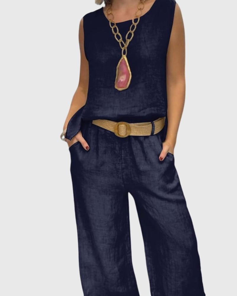 • Bez námahy štýlový: Tento dvojdielny set spája bezrukávový top a široké nohavice pre beznámažne štýlový vzhľad.